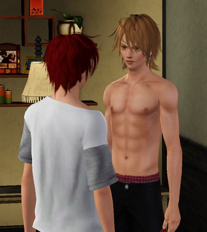 2人ともお風呂上りで、なぜか居間でちょっと険悪ムードでした。
