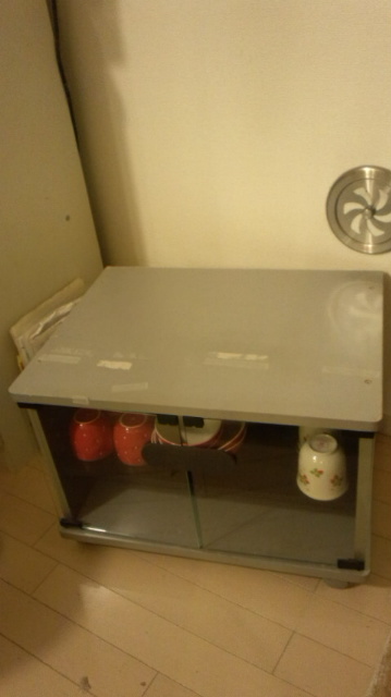 ってことで、キッチンに不足してたカップボードにできないかなぁ~と考えたよ。