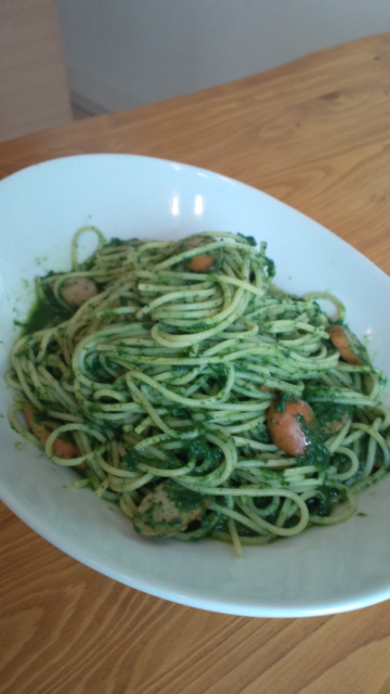 椎名は今から、ほうれん草のパスタを作りますよ♪